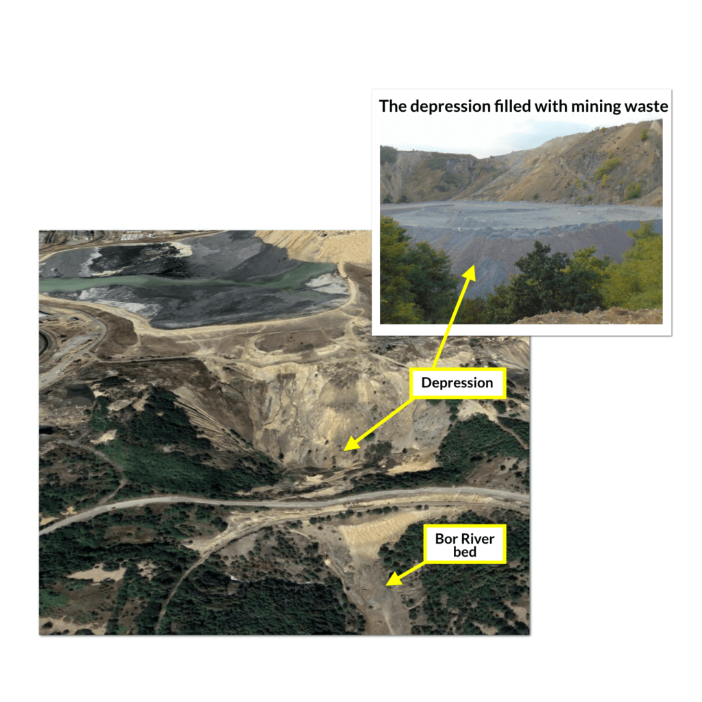 He also warns of the fact that the depression that should accept the flood wave in the event of an accident (dam burst) no longer exists because most of it is filled with mining waste that was deposited there without a proper environmental impact assessment study and permits. He explains that in the event of spillage of the deposited tailings, it would reach the Borska river and threaten the village of Slatina, which is located downstream.